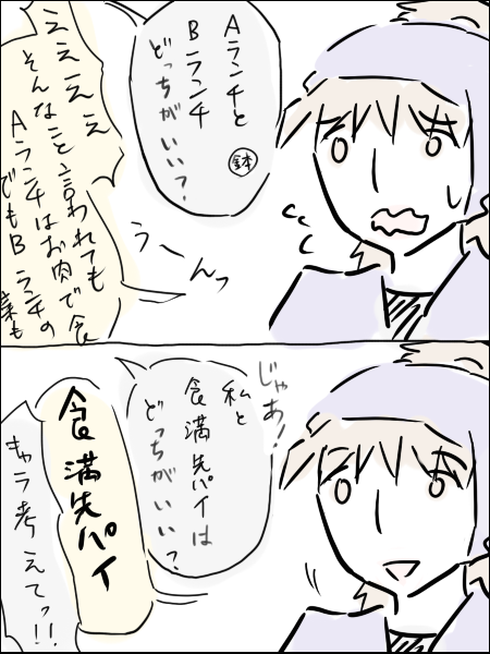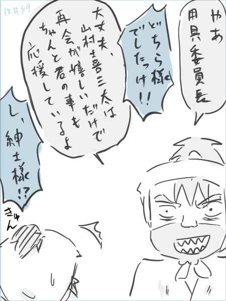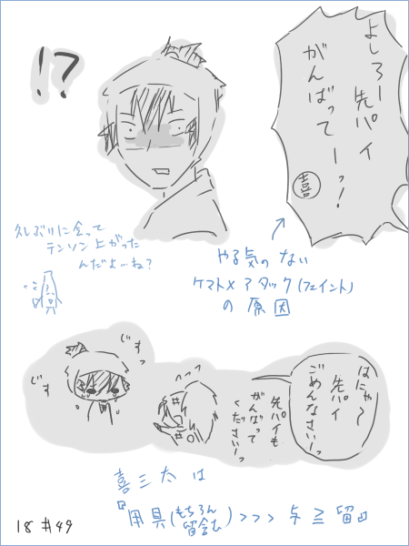喜三太は与四郎先輩より用具委員が好きだけど、食満先輩と与四郎先輩なら、まだ与四郎先輩が好きそうだ。