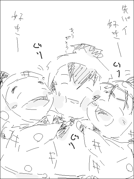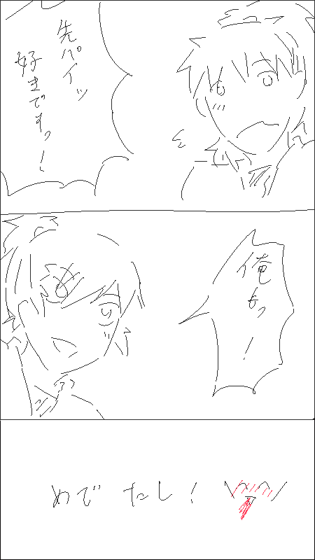 これ酔った時に描いてたみたいでして。同じくへべれけ落書きで出せないものが数個あるんですが、いっさい覚えてなくて翌日驚くって言う。記憶なくなるとか本当あるもんなんですよねえ…毎回なんか不思議。(←