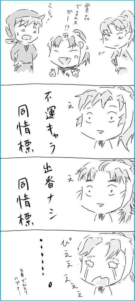 今日は短い落書き漫画で出てこようとしたんですが容量オーバーでした。短いのに。色があるから?orz