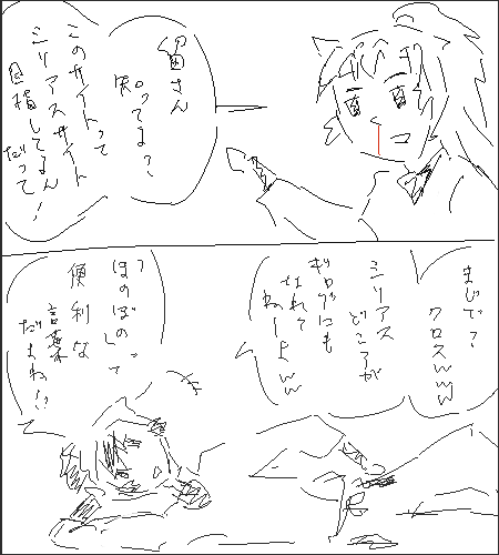 サイトの方に今日か明日あげます多分。でも毎度なんですが日記にあげるための落書きのつもりなんでオチも何もありませんいやホント。