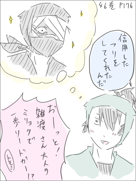 それよりアニメの最後のアレなんだあれ!与食満が並んで仲よさそうなんだけど!?そこプッシュかー!萌える!でも与四郎先輩の訛り無理なんだよなー!←