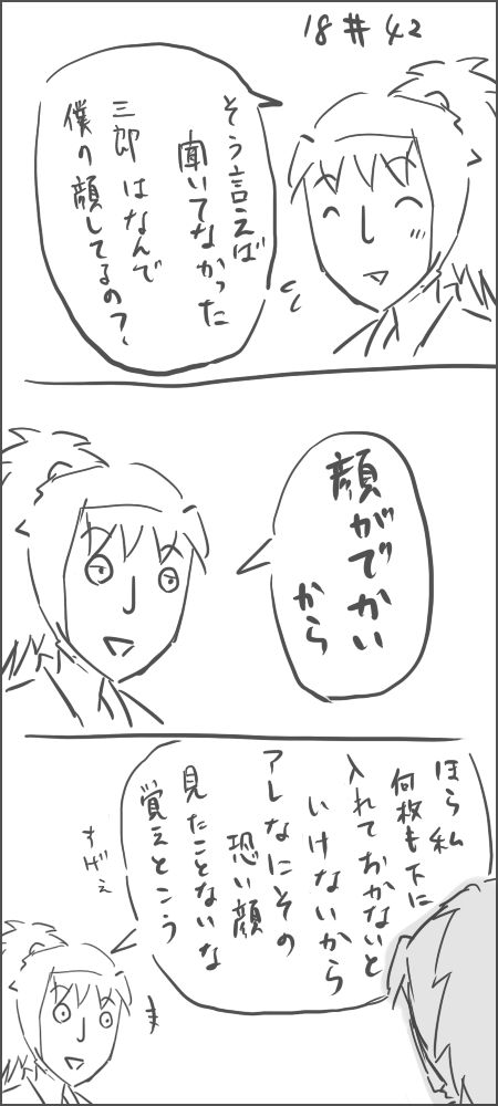 三郎の本当の顔はどんなだろう。何で隠してるんだろう。家系かな。中二でいいのならアルビ/ノとかも候補にいれたい。