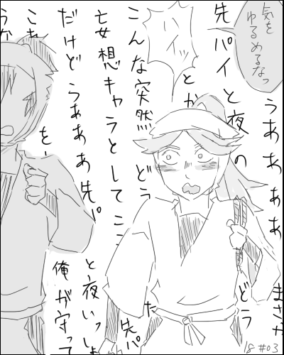 いまは18期を見ながら感想絵描いてるんですがいやあ進まない進まない。一話で何枚描くんだって話です私のバカ!