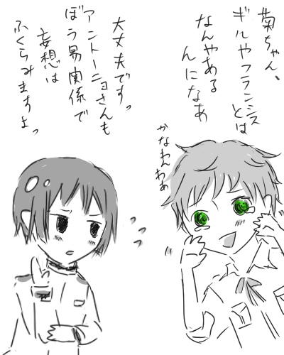 洪←普←日が寂しいからかなあ。いやでも絶対的に普日が好きってわけでもないし…なんでだろう。墺洪は大好きなのに。