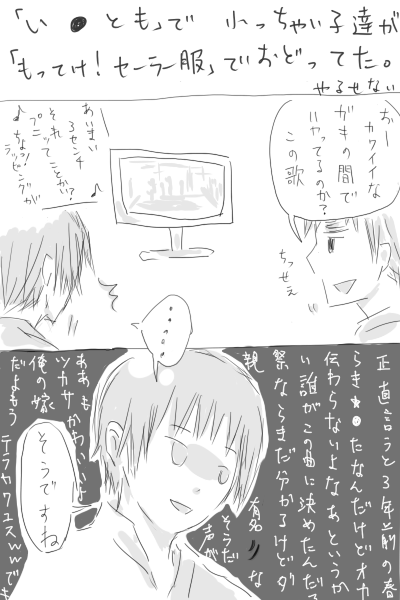 あと追加後半の作画がけ/い/お/んそっくりだなあって思った。描き方忘れちゃったんだろうか京兄…?あの絵柄は可愛くてすっごい好きなんだけど、ハ/ル/ヒは前の方があってたなあ。そういえばけ/い/お/んもまだ見てないです。気づいたら放送途中で録れなかった…また再放送してくれないかなあ。
